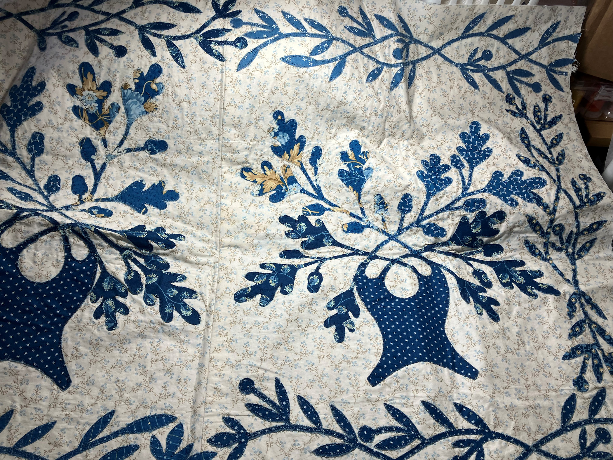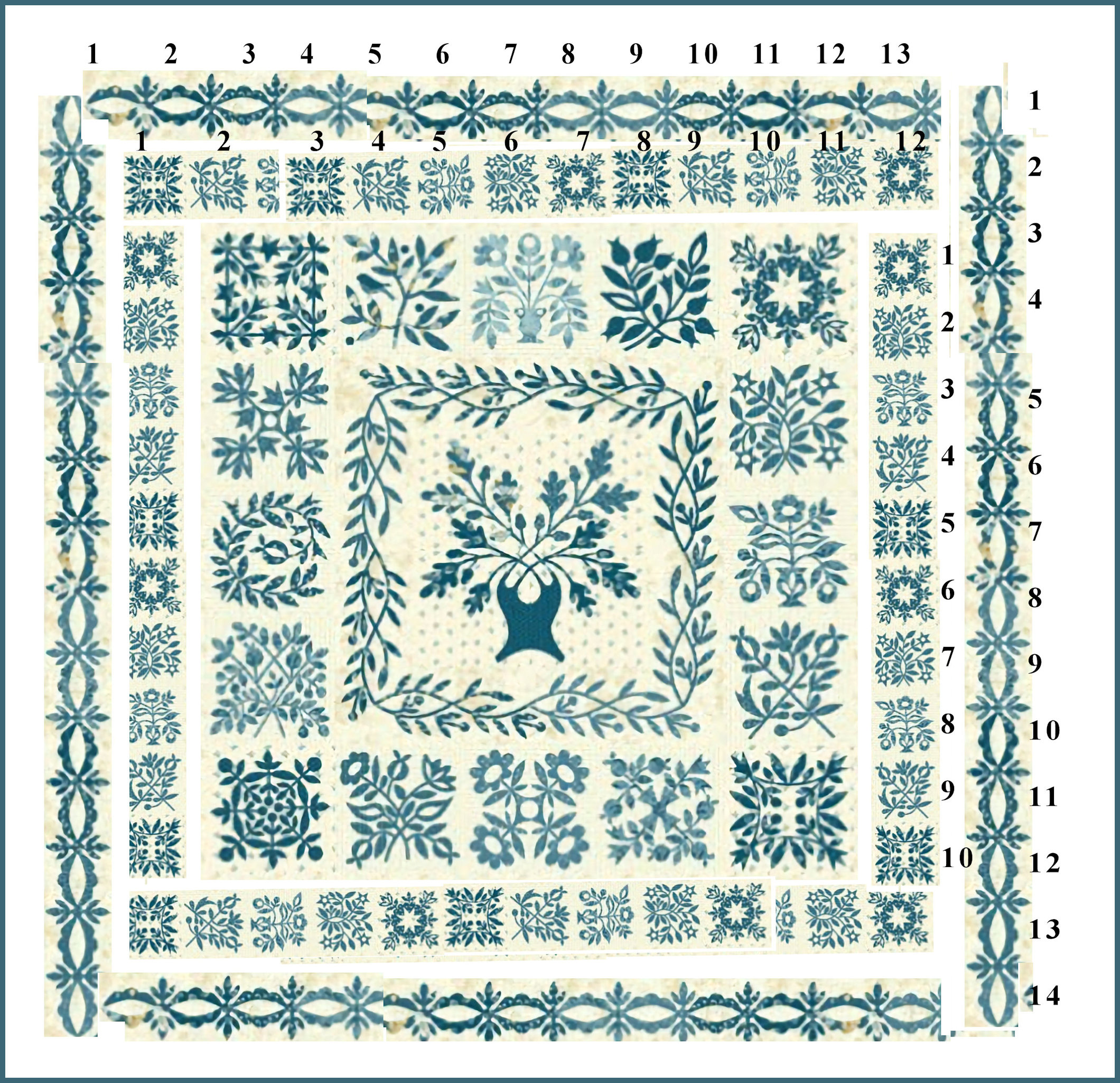 Quilts Blue Lasey Kit Applique Quilt Sitar Laundry Basket Lasey Family Tree. tree image Lasey Family Tree larger w numbers sample size Extra material 16 stitched 30 x 44 21 40 5sq 11sq Watercolors – Smoke 108 inches Wide by 3 yards Lasey Family Tree applique kit – $300 Extra material from Laundry Basket – $84 Smoke 108″ sq backing fabric – $30