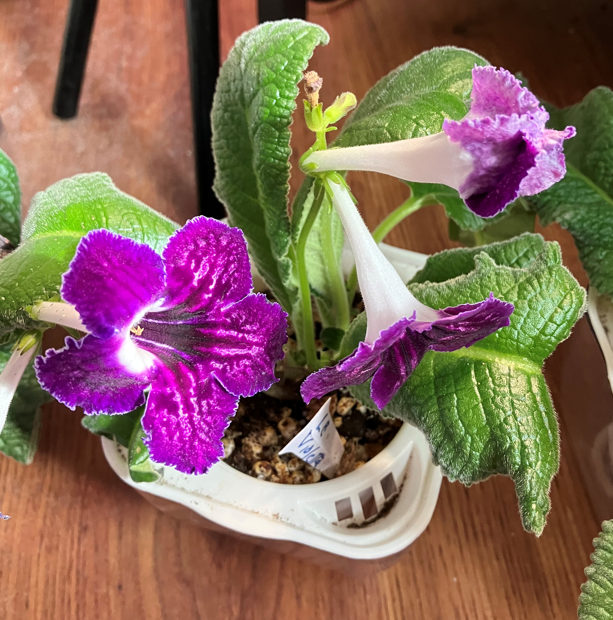 LE Violetta received June 25. Leafed 2/17/2025.Le Violetta Aug 13, 2025.LE Violetta. Streptocarpus, Sept 1, 2025LE Violetta, large bloom. Several blooms developing. Will deflower in a few day to assists root and leaf development. Sept 6, 2025