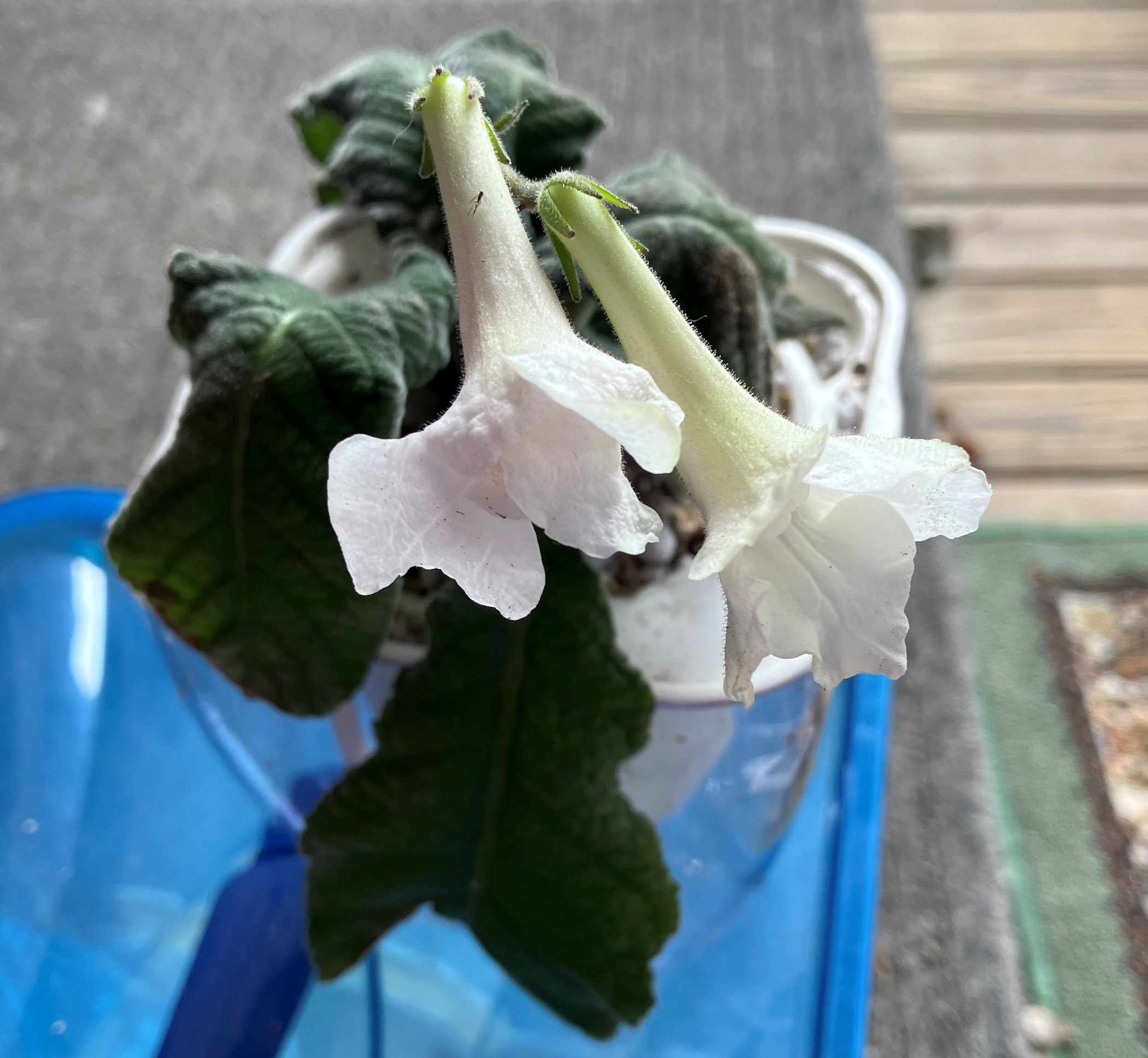 Heartland’s Snow Crystal received May 22 2025. Large, lightly fluted, semidouble crystal-white blooms. Medium green foliage. Good grower and bloomer.. Leafed 6/2/2024.Heartland’s Snow Crystal Large, lightly fluted, semidouble crystal-white blooms. Medium green foliage. Good grower and bloomer. Shown June 22, 2025. Streptocarpus.Snow Crystal same bloom 2 months later, Aug 25, 2025.