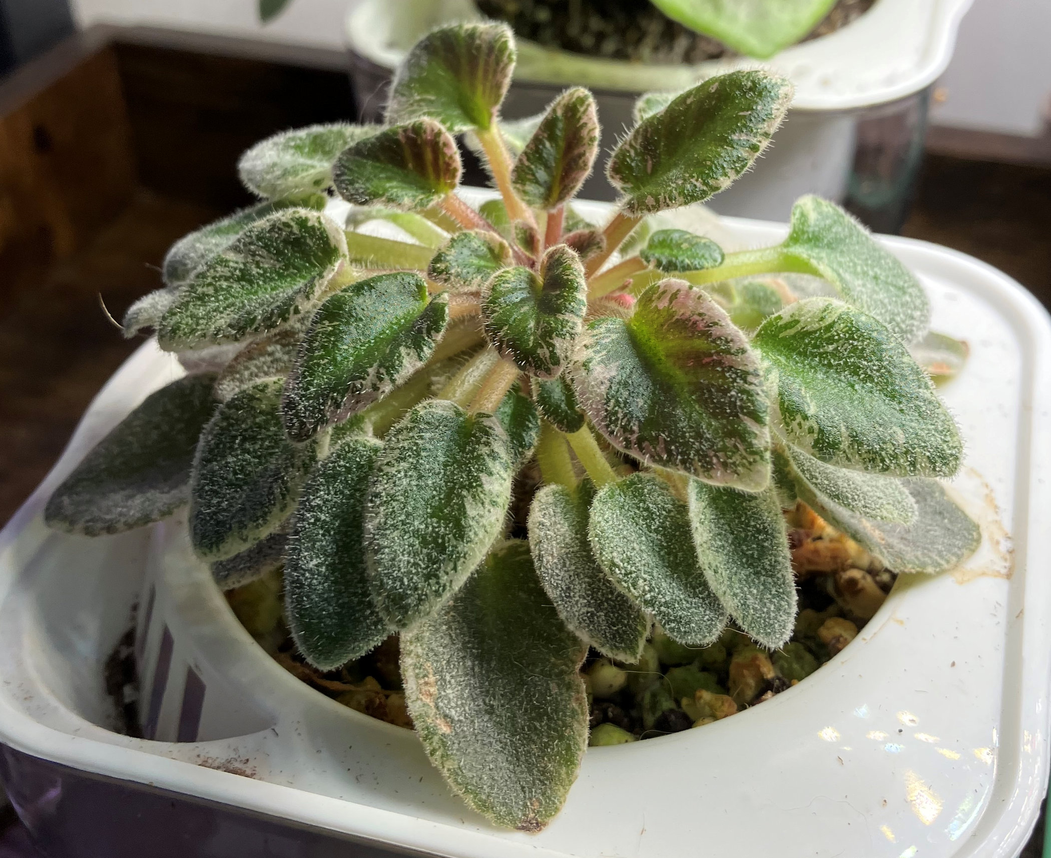 Pink MintPink Mint, Trailing AV. Not removing suckers. Aug 20, 2025. Leafed 1/23/25.Pink Mint AV, Sept 1, 2025. Slowly growing, putting out small (strong) leaves.pink mint Oct 11, 2025. As this is a trailing violet, repotted into tall, 4-inch square, green self watering pot from Violet Barn.